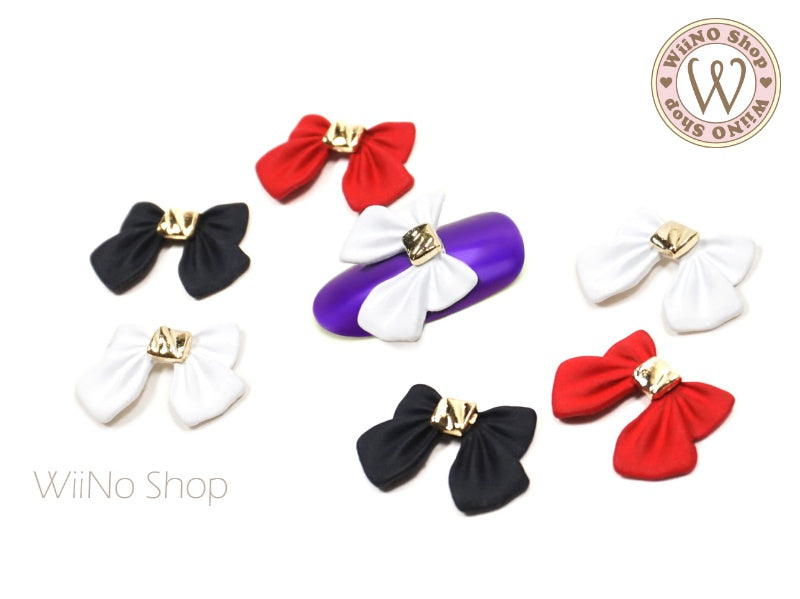 Large Color Ribbon Bow Nail Metal Charm - 2 pcs