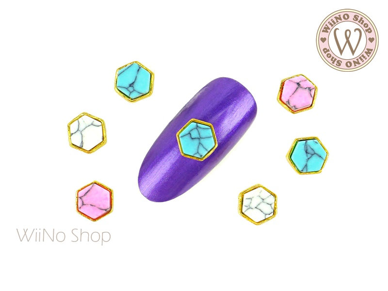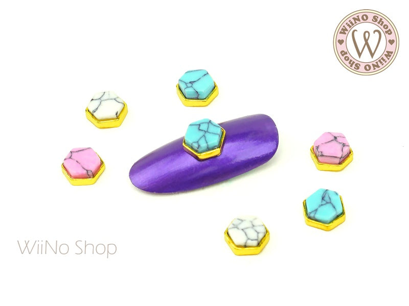 Hexagon Turquoise Gemstone Nail Metal Charm - 2 pcs