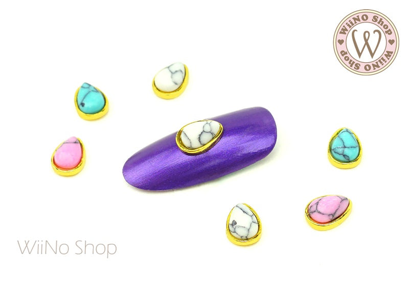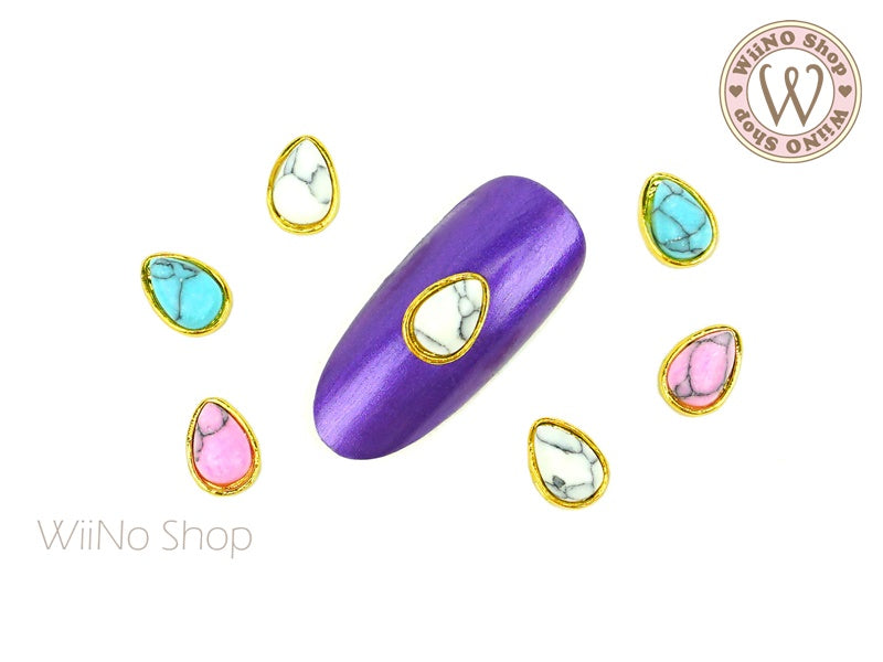Drop Turquoise Gemstone Nail Metal Charm - 2 pcs