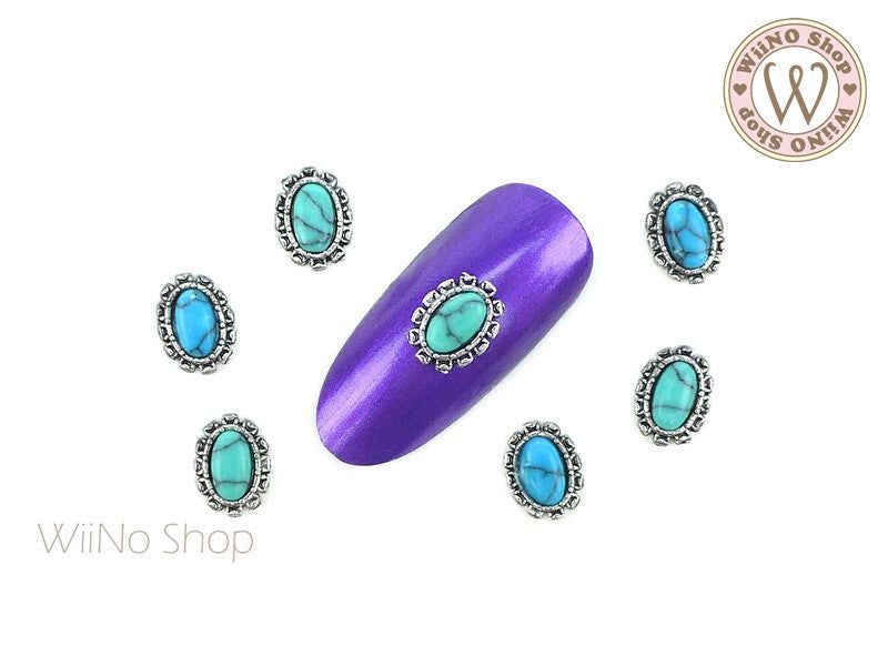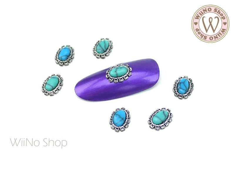 Oval Turquoise Gemstone Bohemian Nail Metal Charm - 2 pcs