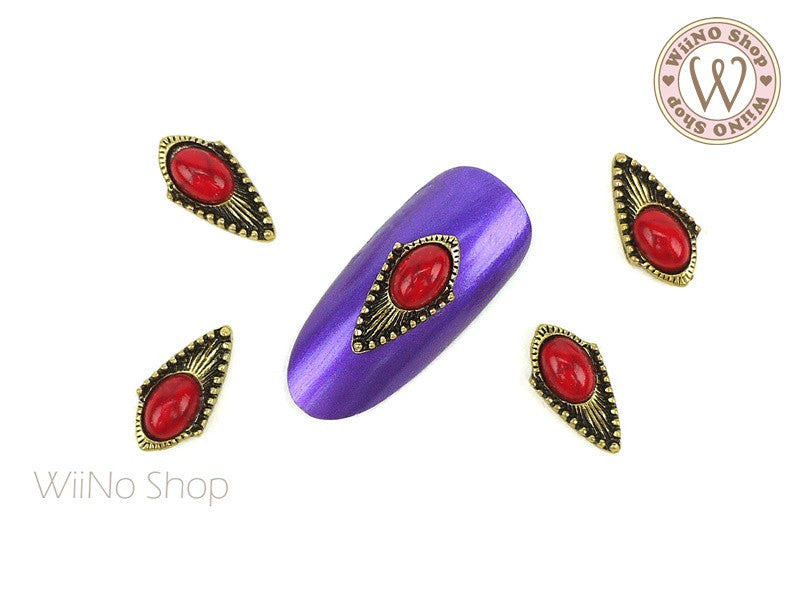 Red Turquoise Vintage Gold Bohemian Shield Nail Metal Charm - 2 pcs