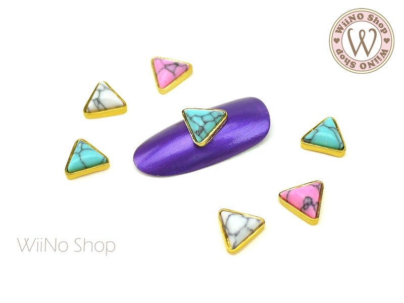Triangle Turquoise Gemstone Nail Metal Charm - 2 pcs