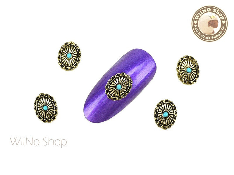 Vintage Gold Oval Bohemian Nail Metal Charm - 2 pcs (BO02G)