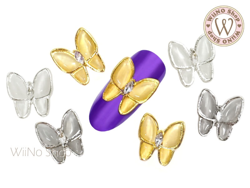 Cat Eye Rhinestone Butterfly Nail Metal Charm - 2 pcs