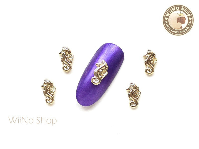Gold Seahorse Nail Metal Charm - 2 pcs