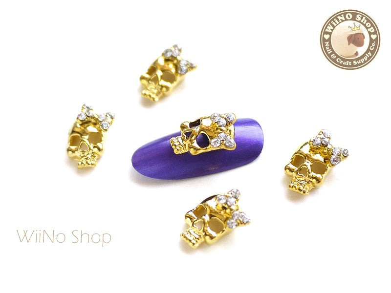 Gold Skull with Crystal Bow Nail Metal Charm - 2 pcs