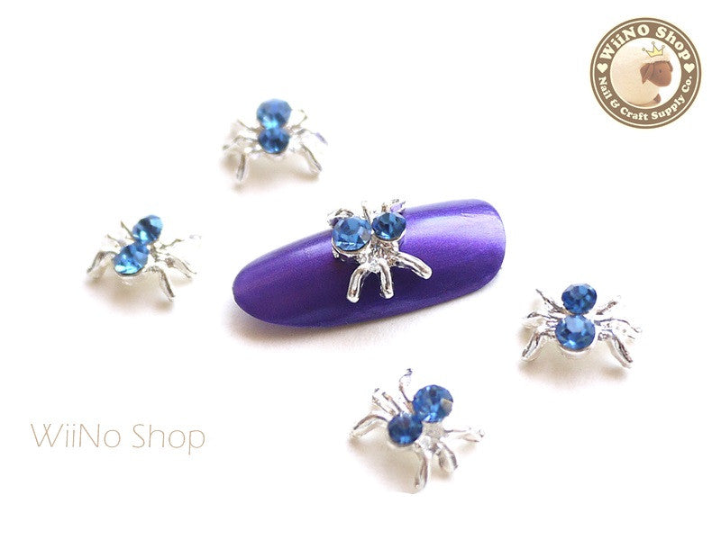 Blue Crystal Silver Spider Nail Metal Charm - 2 pcs