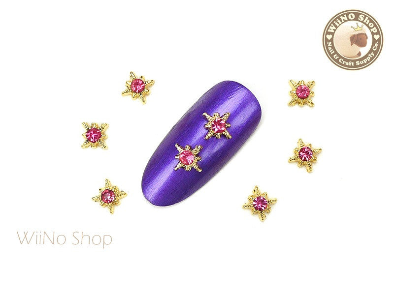 Gold Shine Star with Rose Pink Crystal Nail Metal Charm - 2 pcs