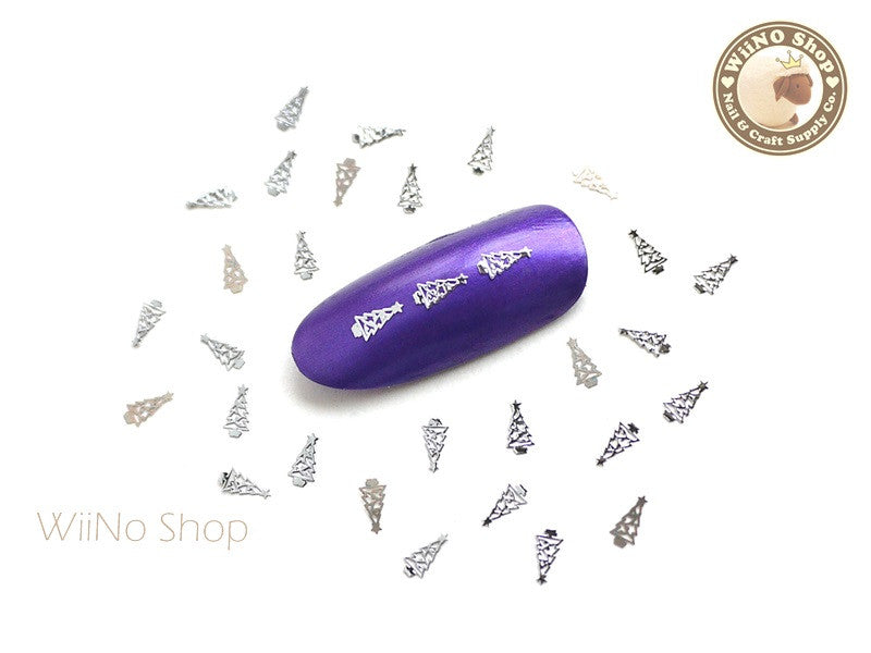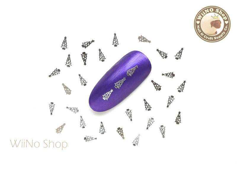 Silver Christmas Tree Ultra Thin Nail Art Metal Decoration - 25 pcs