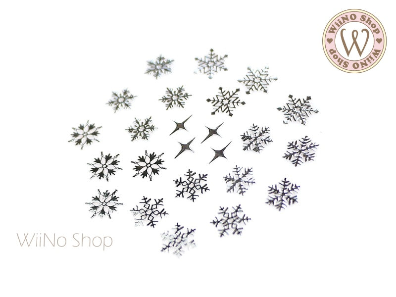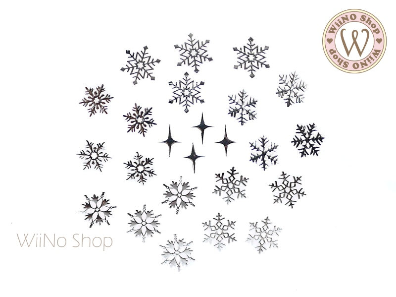 Silver Snowflake Mix Ultra Thin Nail Art Metal Decoration - 24 pcs