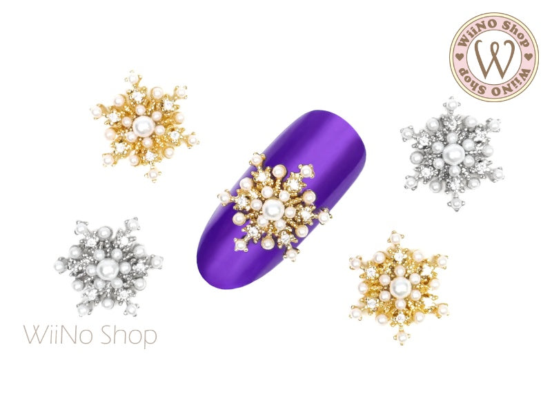 Snowflake Pearl Crystal Nail Jewelry Charm - 2 pcs