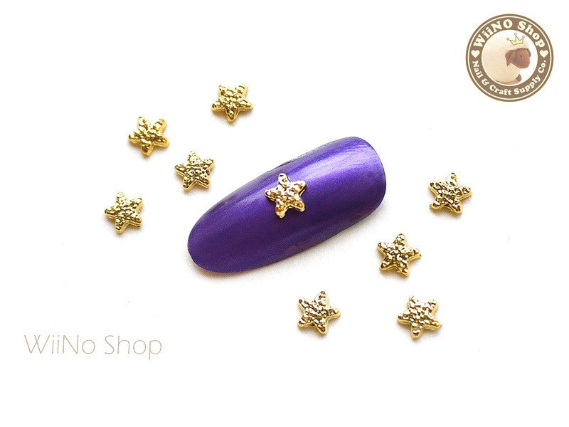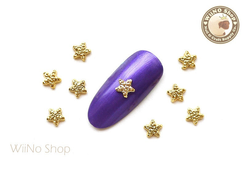 Gold Textured Star Nail Metal Charm - 4 pcs