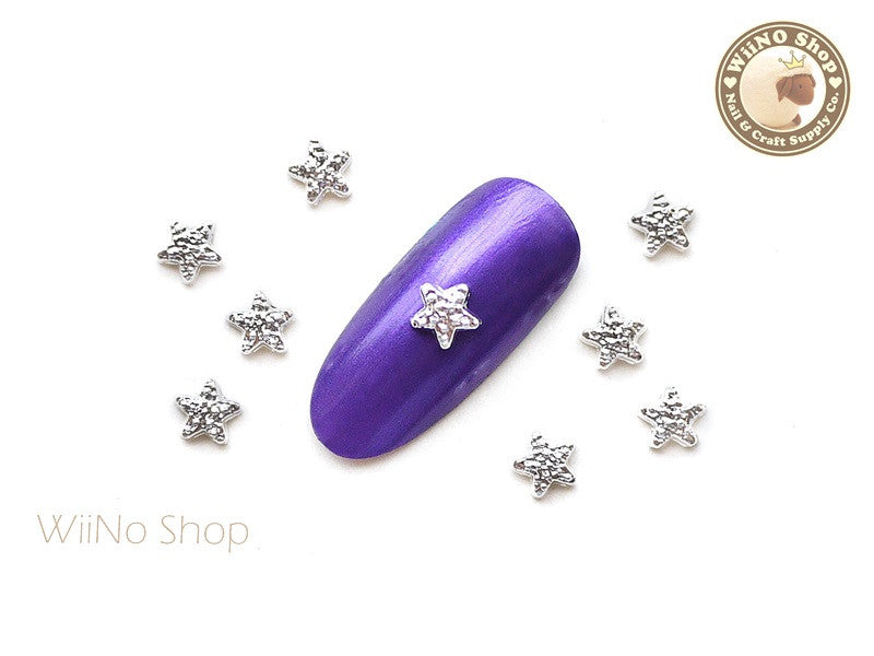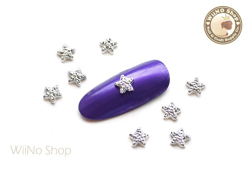 Silver Textured Star Nail Metal Charm - 4 pcs
