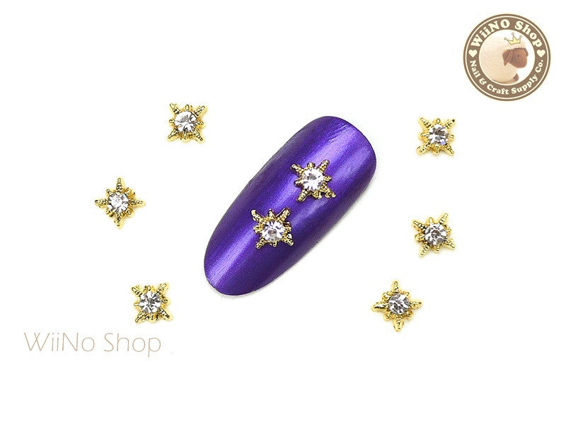 Gold Shine Star with Clear Crystal Nail Metal Charm - 2 pcs