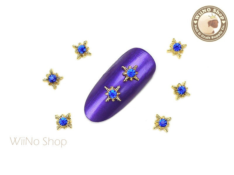 Gold Shine Star with Blue Crystal Nail Metal Charm - 2 pcs