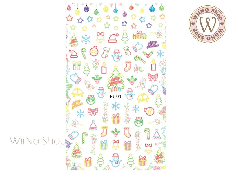 Christmas Neon Light Adhesive Nail Art Sticker - 1 pc (F501)