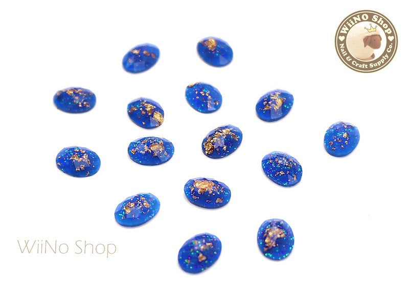 6 x 8mm Royal Blue Gold Foil Glitter Oval Flat Back Acrylic Nail Art Rhinestone - 10 pcs