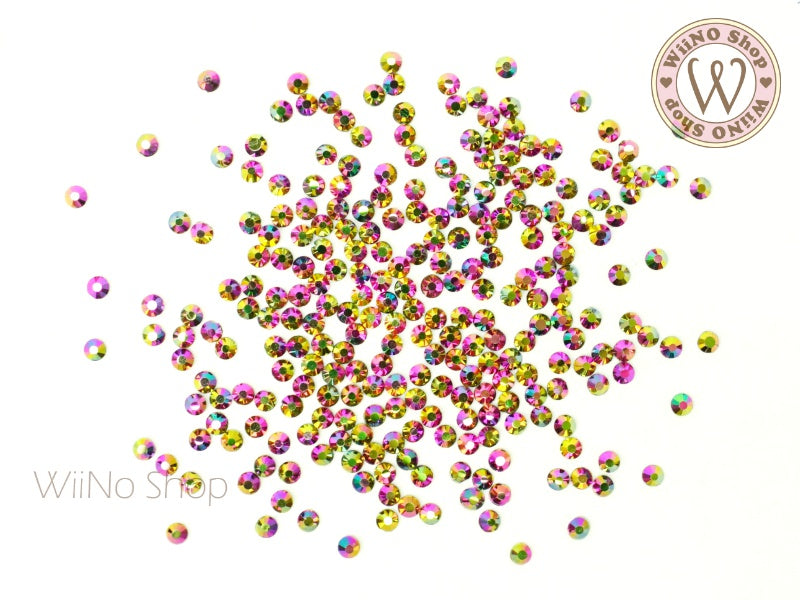 Neon Yellow Iridescent Round Flatback Crystal (ss6-ss30)