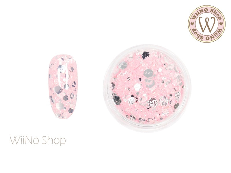 Pastel Pink Mirror Hexagon Mix with Glitter Dust (HM08)
