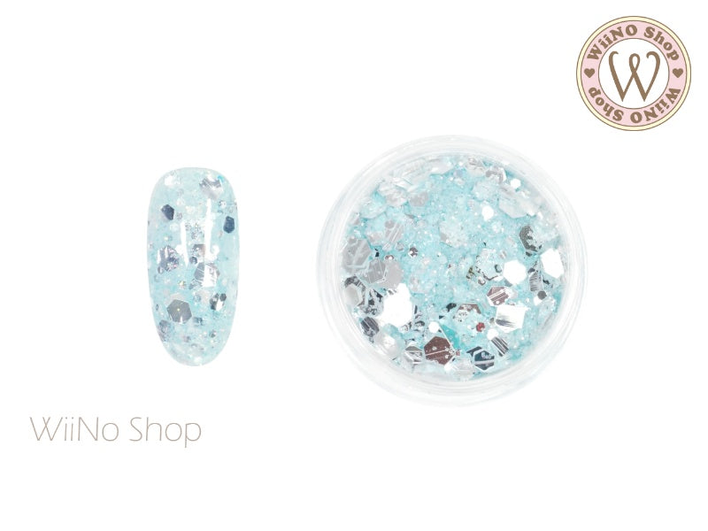 Light Blue Mirror Hexagon Mix with Glitter Dust (HM07)