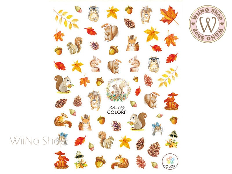 Fall Squirrel Adhesive Nail Art Sticker - 1 pc (CA-119)
