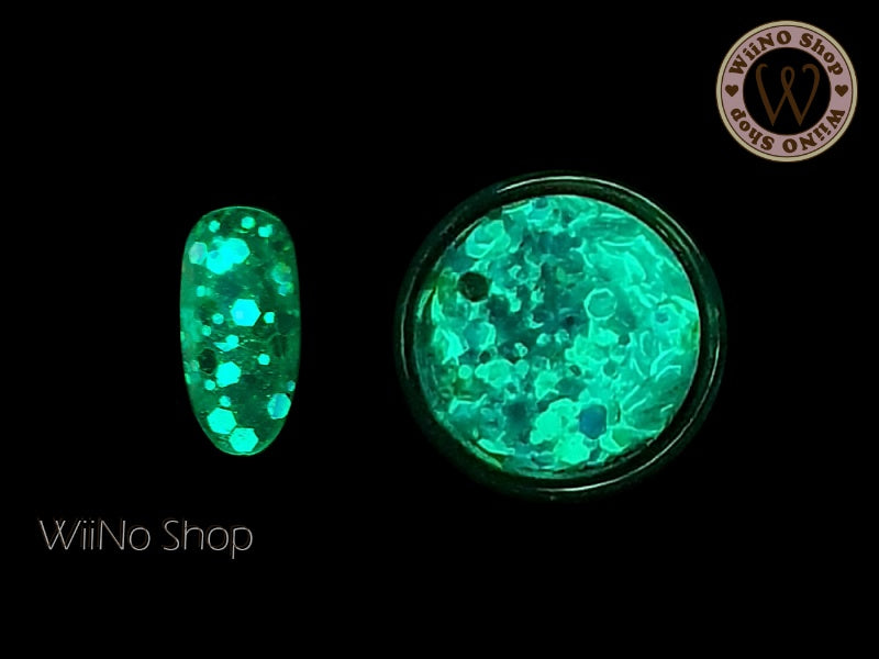 Aqua Glow in The Dark Hexagon Mix with Glitter Dust (GD09)