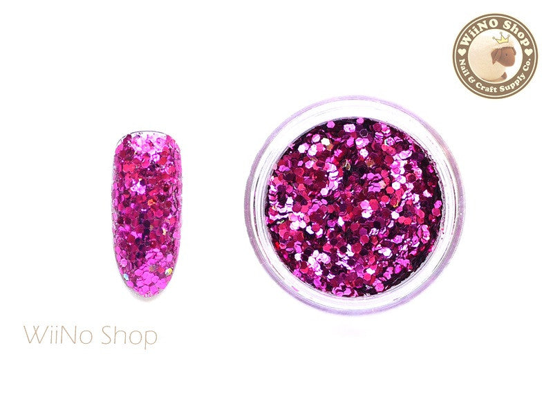 Fuchsia Hot Pink Hexagon Mix with Glitter Dust (A09)