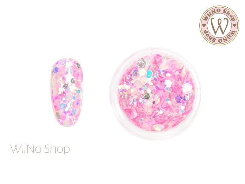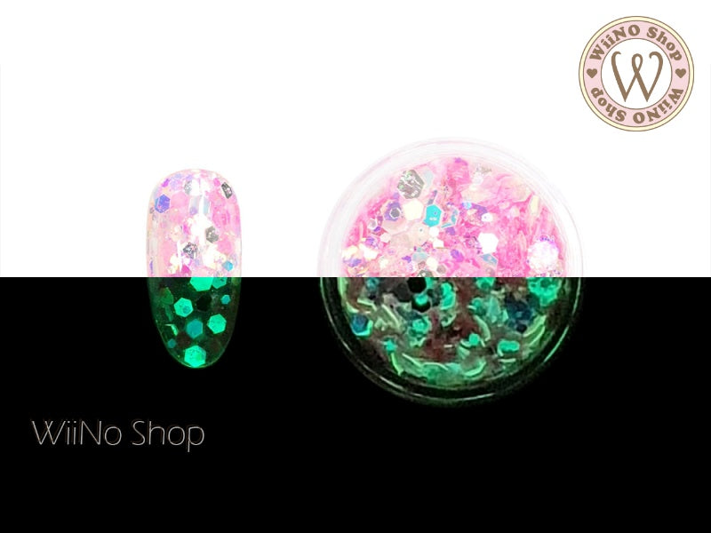 Pink Glow in The Dark Hexagon Mix with Glitter Dust (GD12)