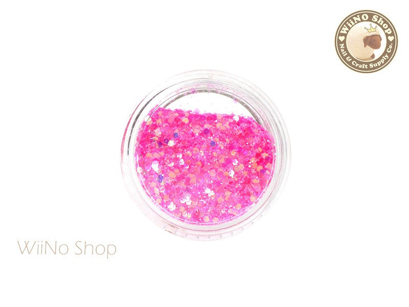 Hot Pink Hexagon Mix with Glitter Dust (A04)