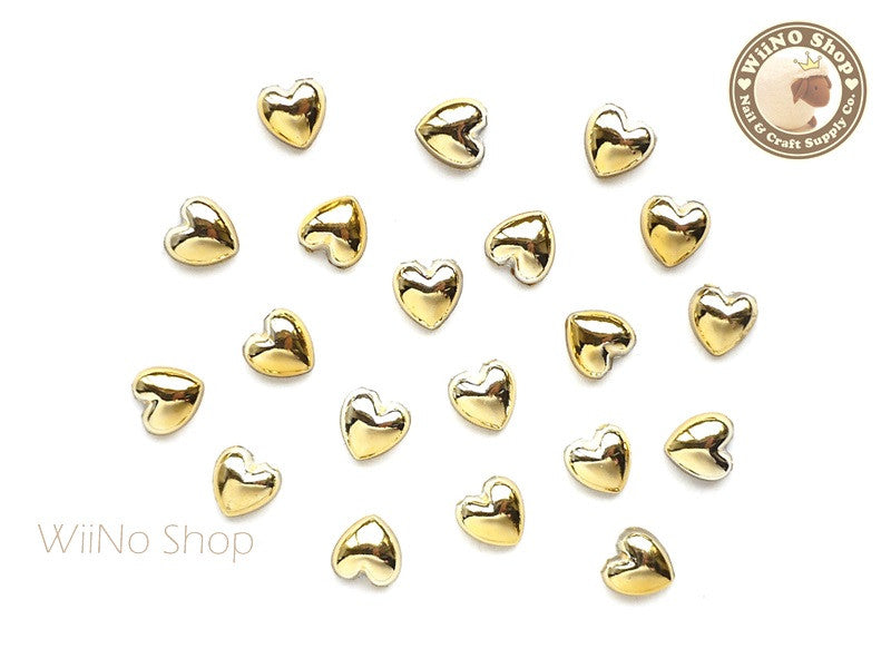 8mm Heart Gold Chrome Flat Back Acrylic Cabochon Nail Art - 10 pcs