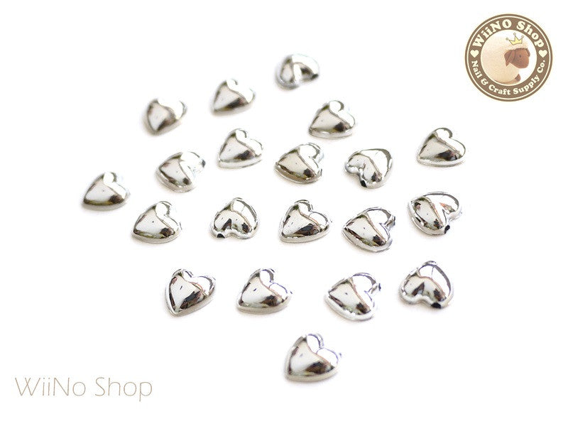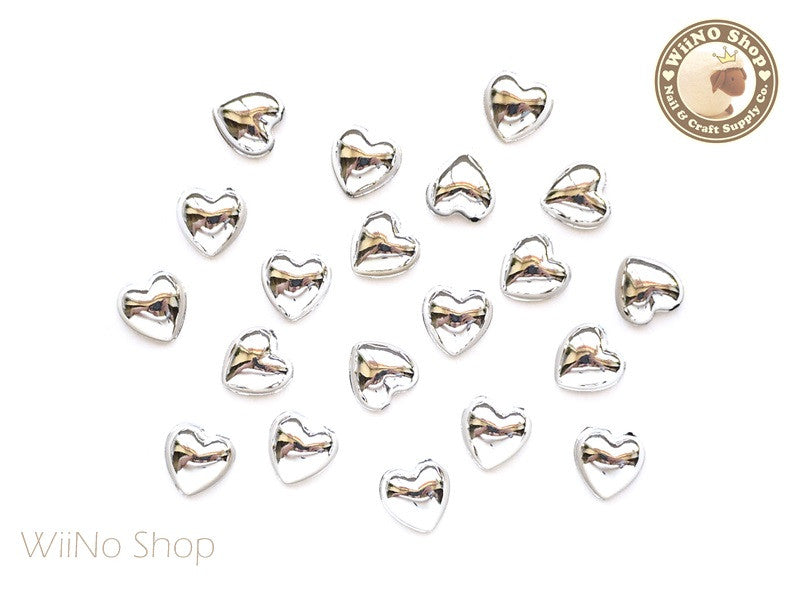 8mm Heart Silver Chrome Flat Back Acrylic Cabochon Nail Art - 10 pcs
