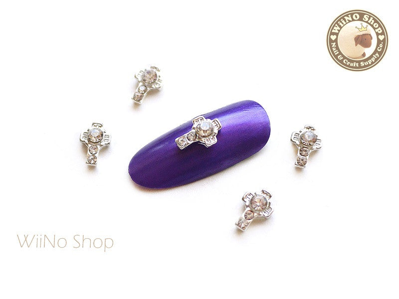 Silver Small Crystal Cross Nail Art Metal Charm - 2 pcs