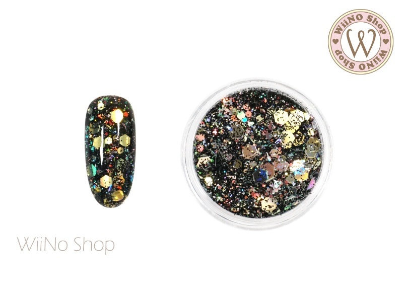 Black Magic Iridescent Hexagon Mix with Glitter Dust (IH01)