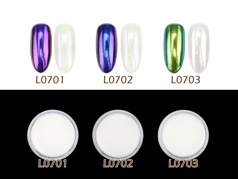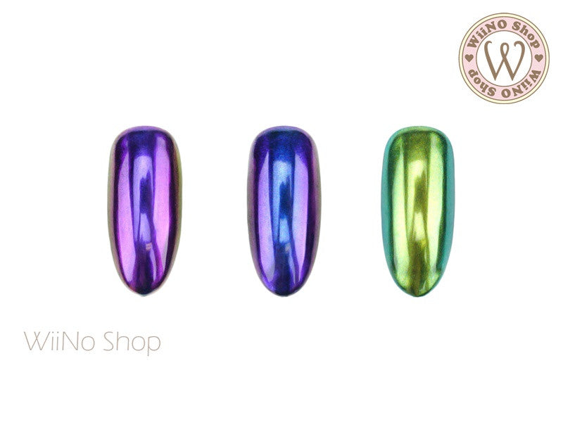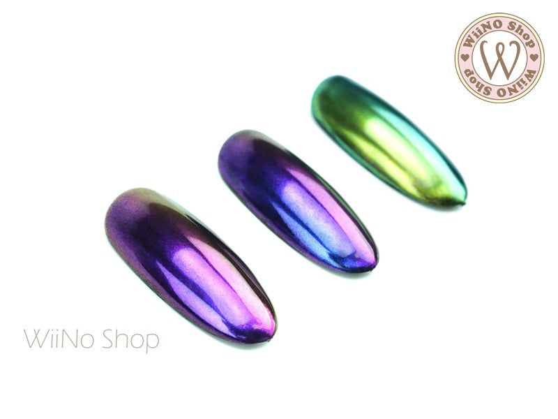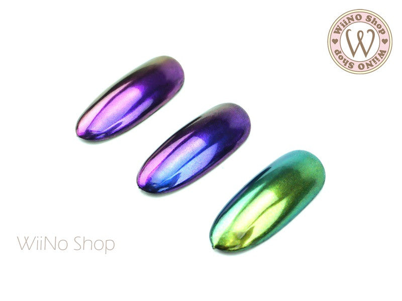 3. Use the sponge applicator apply the opaline chameleon dust. Gently press down the opaline chameleon dust and brush on your nail.