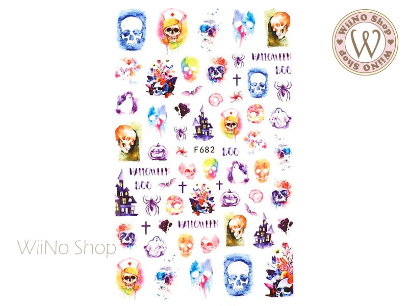 Watercolor Skull Halloween Adhesive Nail Art Sticker - 1 pc (F682)