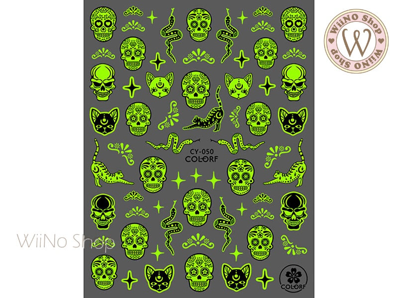 Glow in the Dark Sugar Skull Adhesive Nail Art Sticker - 1 pc (CY-050)