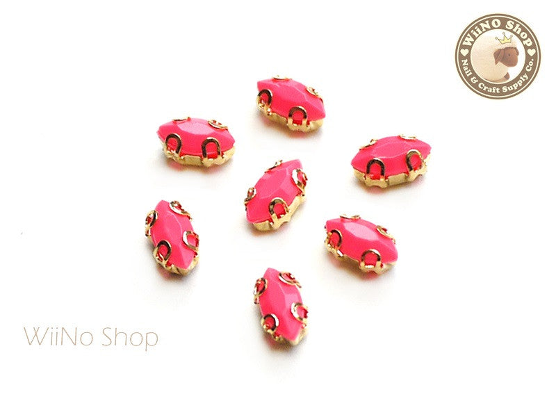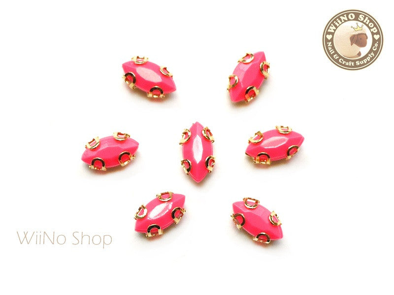 4 x 8mm Neon Pink Marquise Acrylic Rhinestone with Setting - 5 pcs