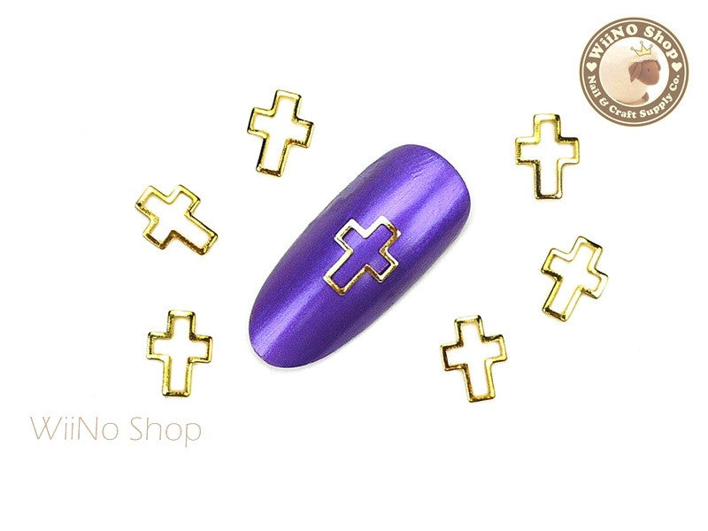 6 x 8mm Gold Cross Metal Frame Decoration - 5 pcs
