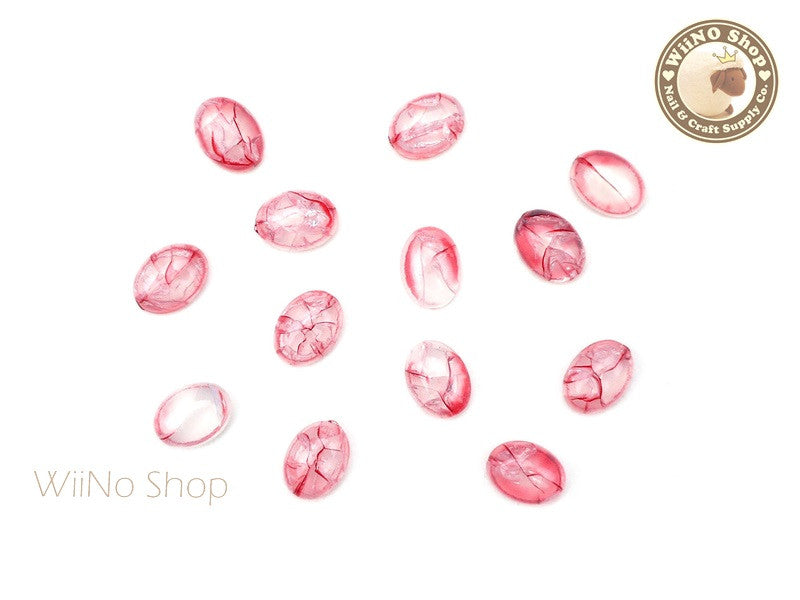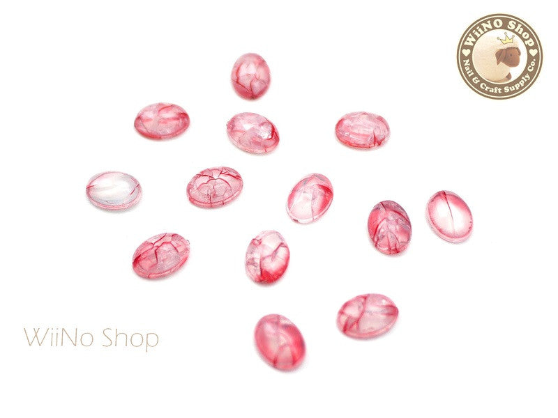 6 x 8mm Red Ice Crackle Oval Flat Back Acrylic Cabochon Nail Art - 10 pcs