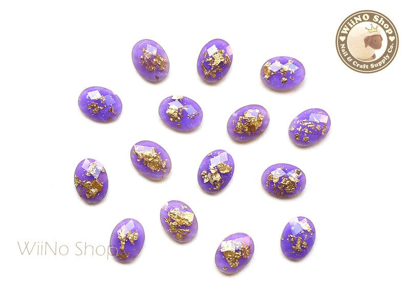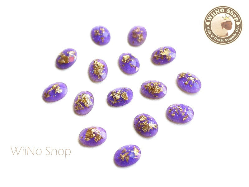 6 x 8mm Violet Purple Gold Foil Glitter Oval Flat Back Acrylic Nail Art Rhinestone - 10 pcs