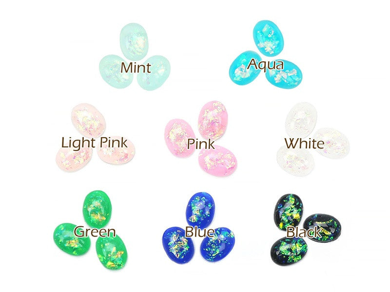 6 x 8mm Sparkle Oval Flatback Cabochon - 10 pcs