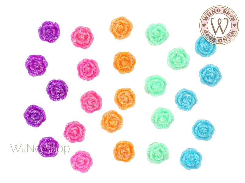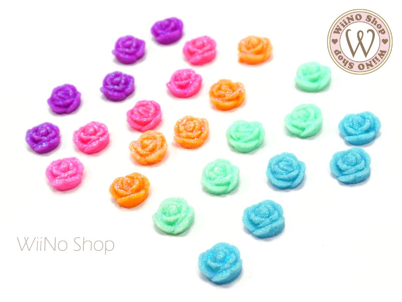Glitter Rose Nail Art Cabochons - 5 pcs
