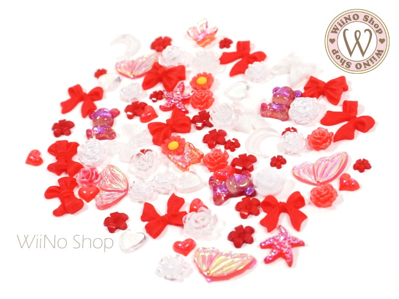 Red & White Blossom Garden Mix Nail Art Decorations - 15 pcs