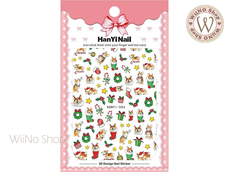Cute Christmas Corgi Adhesive Nail Art Sticker - 1 pc (HY-559)