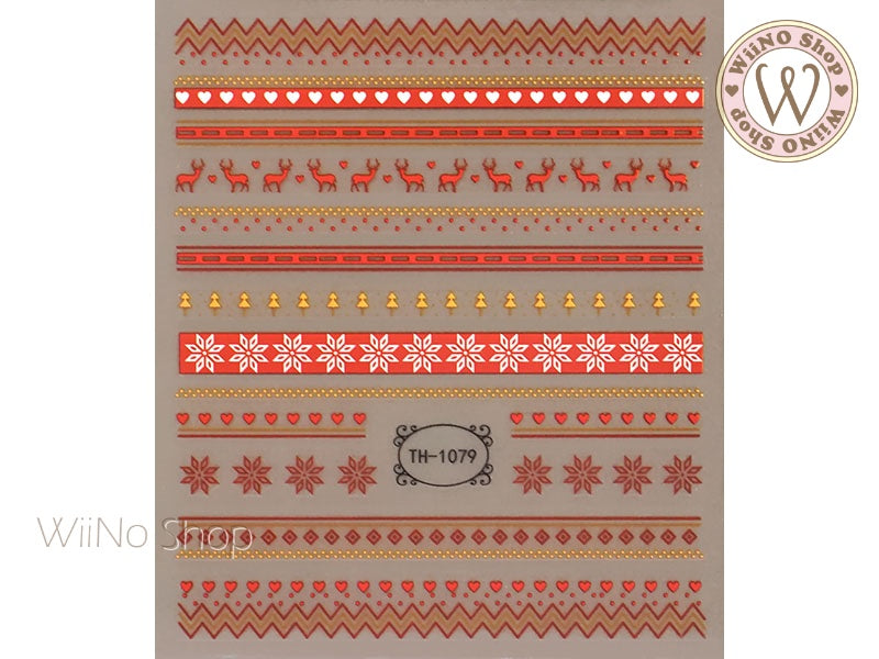 3D Red Green Reindeer Sweater Pattern Adhesive Nail Art Sticker - 1 pc (TS-270)