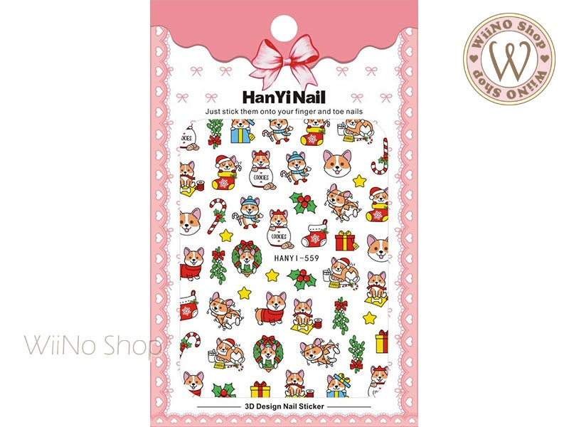 Cute Christmas Corgi Adhesive Nail Art Sticker - 1 pc (HY-559)