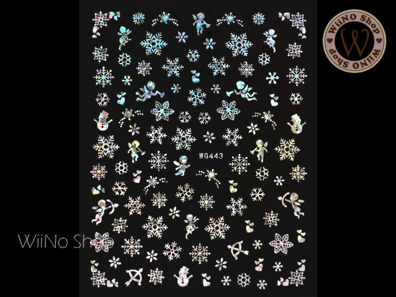 Silver Holographic Snowflake Adhesive Nail Art Sticker - 1 pc (WG443SH)
