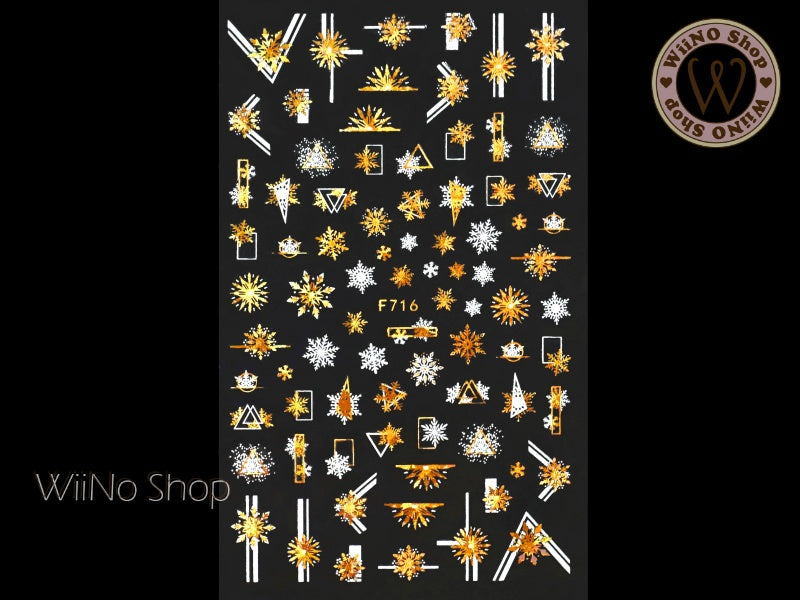 Snowflake Gold Holographic Adhesive Nail Art Sticker - 1 pc (F716-GH)