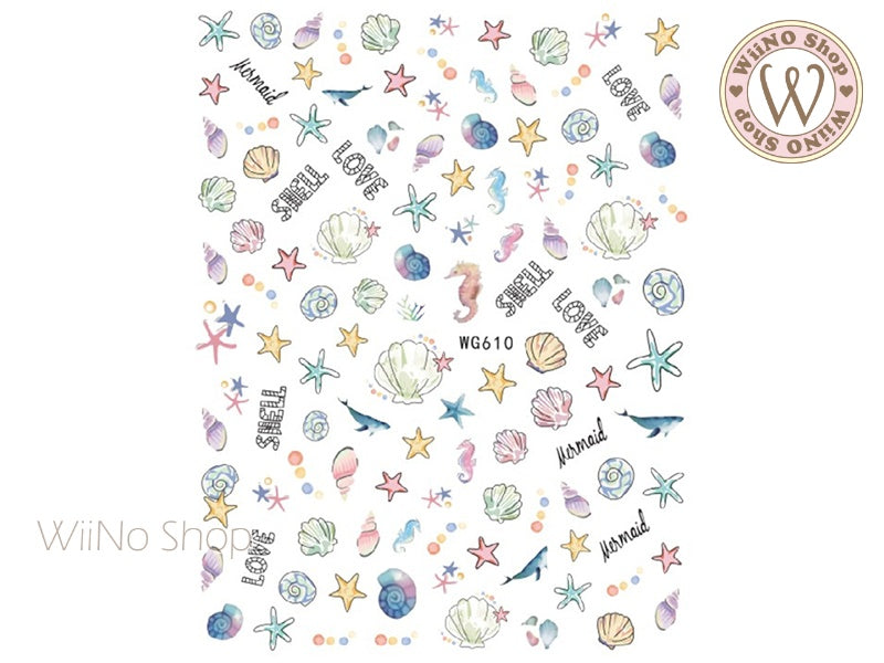 Watercolor Under the Sea Adhesive Nail Art Sticker - 1 pc (WG610)