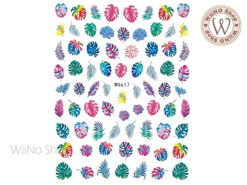 Tropical Leaves Flower Adhesive Nail Art Sticker - 1 pc (F758)